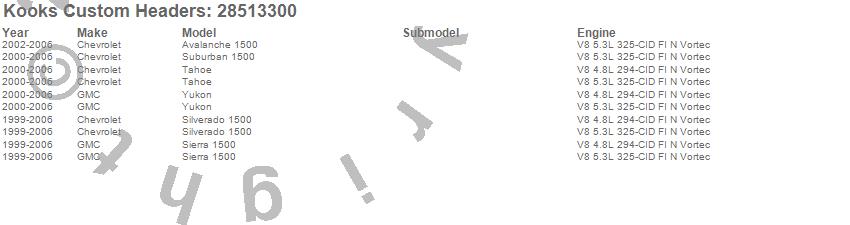 Below is an abreviated list of applications for the GREEN Catted Y-Pipe.