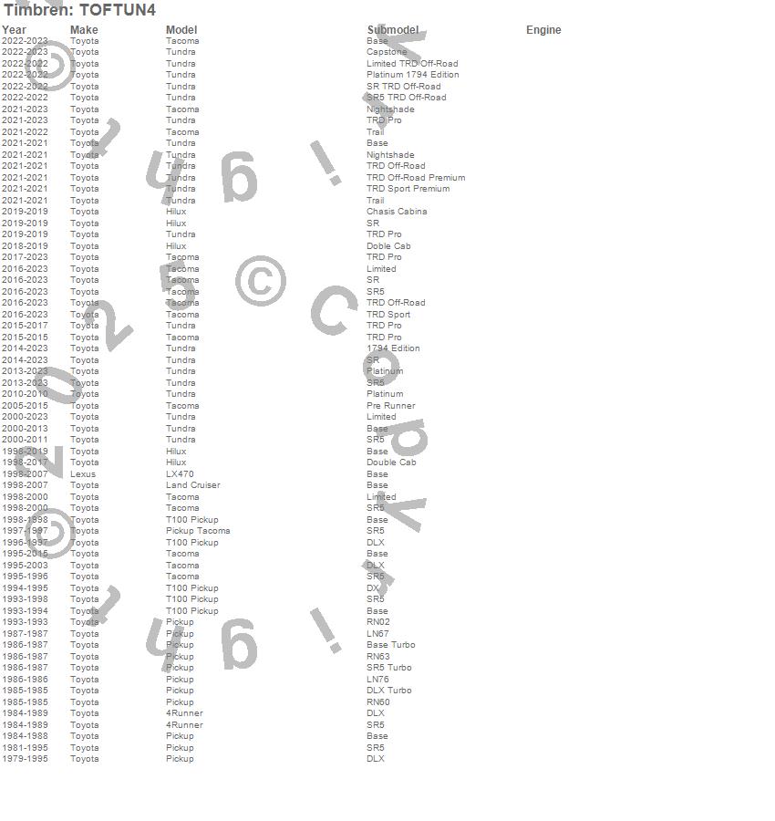 4Runner, Hilux, Land Cruiser, LX470, Pickup, T100, T100 Pickup, Tacoma, Tundra, Lexus, Toyota, 2016, 2015, 2014, 2013, 2012, 2011, 2010, 2009, 2008 more…