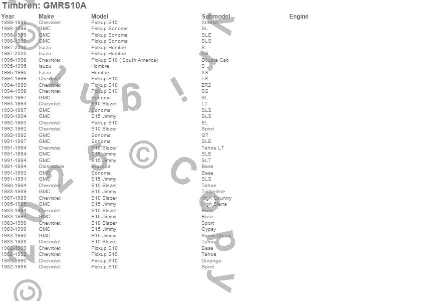 Bravada, Hombre, S10 Blazer, S10 Pickup, S10 Pickup (South America), S15 Jimmy, Sonoma, Chevrolet, GMC, Isuzu, Oldsmobile, 2004, 2003, 2002, 2001, 2000, 1999, 1998, 1997, 1996 more…