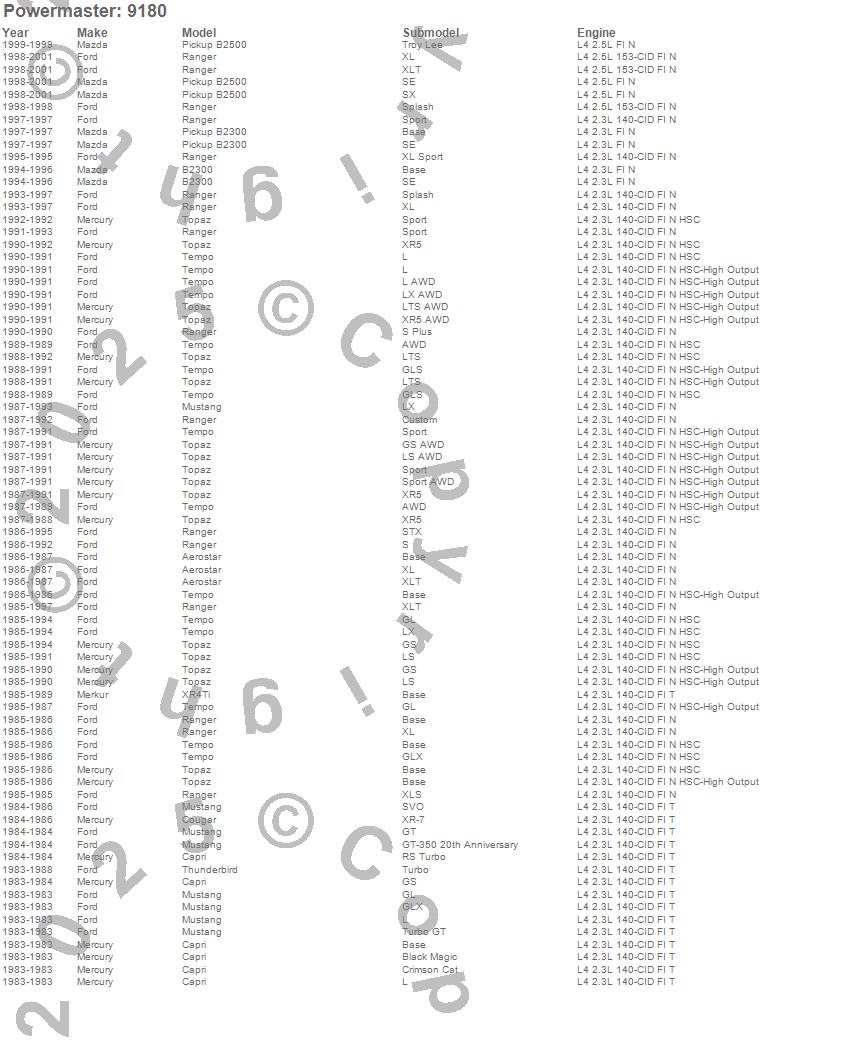 Aerostar, B2300, B2500, Capri, Cougar, Mustang, Ranger, Tempo, Thunderbird, Topaz, XR4Ti, Ford, Mazda, Mercury, Merkur, 2001, 2000, 1999, 1998, 1997 more…
