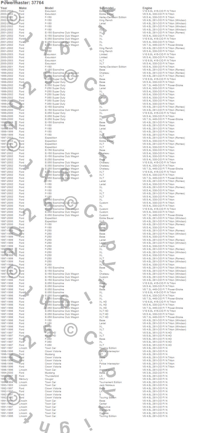Cougar, Crown Victoria, E-150 Econoline, E-150 Econoline Club Wagon, E-250 Econoline, E-350 Econoline, E-350 Econoline Club Wagon, Excursion, Expedition, F-150, F-150 Pickup, F-250 Pickup, F-250 Super Duty Pickup, F-350 Pickup, F-350 Super Duty Pickup, Mustang, Thunderbird, Town Car, Ford, Lincoln more…