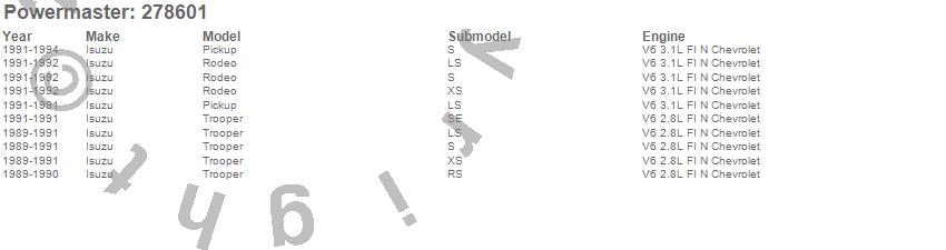 Below is an abreviated list of applications for the Alternator.