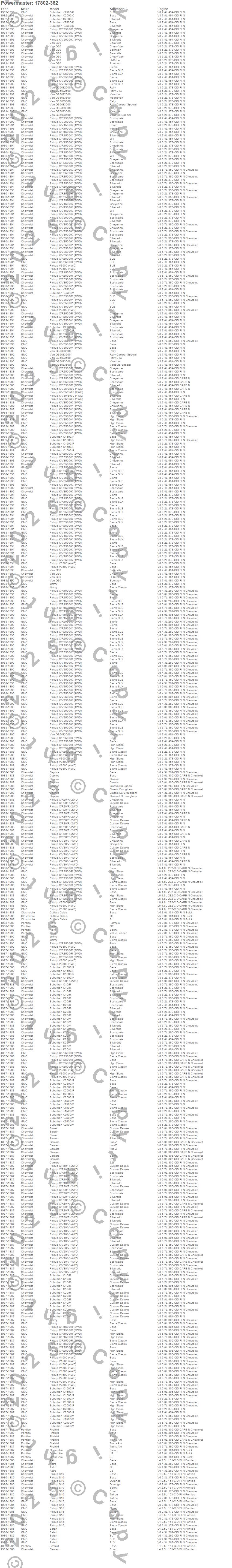 Astro, Blazer, C1500 Pickup, C2500 Pickup, C2500 Suburban, C3500 Pickup, Camaro, Caprice, Cutlass Calais, Fiero, Firebird, G20, G2500, G30, G30 Van, G35/G3500 Van, G3500, Grand Am, Jimmy, K1500 Pickup more…