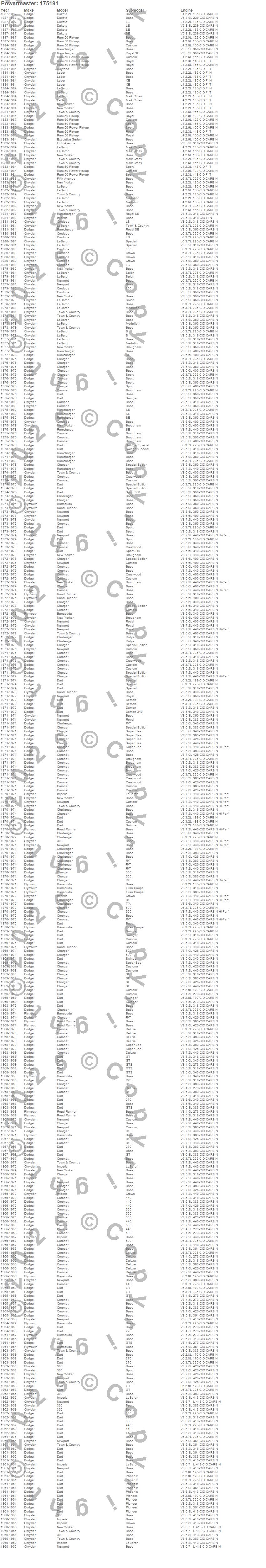 Barracuda, Challenger, Charger, Coronet, Dart, Road Runner, Dodge, Plymouth, 1978, 1977, 1976, 1975, 1974, 1973, 1972, 1971, 1970, 1969, 1968, 1967 more…