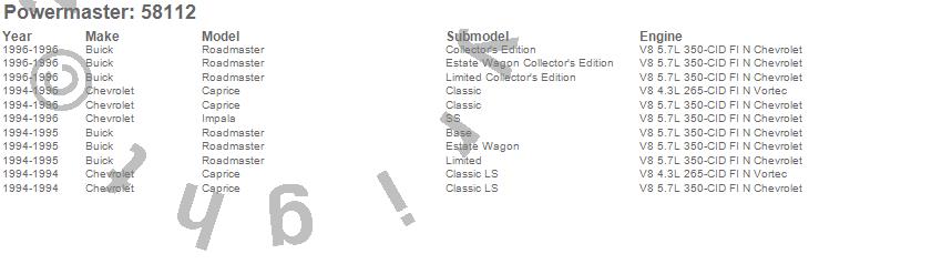 Below is an abreviated list of applications for the Alternator.
