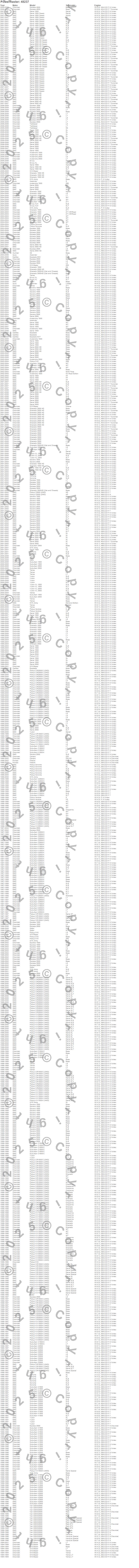 Below is an abreviated list of applications for the Alternator.