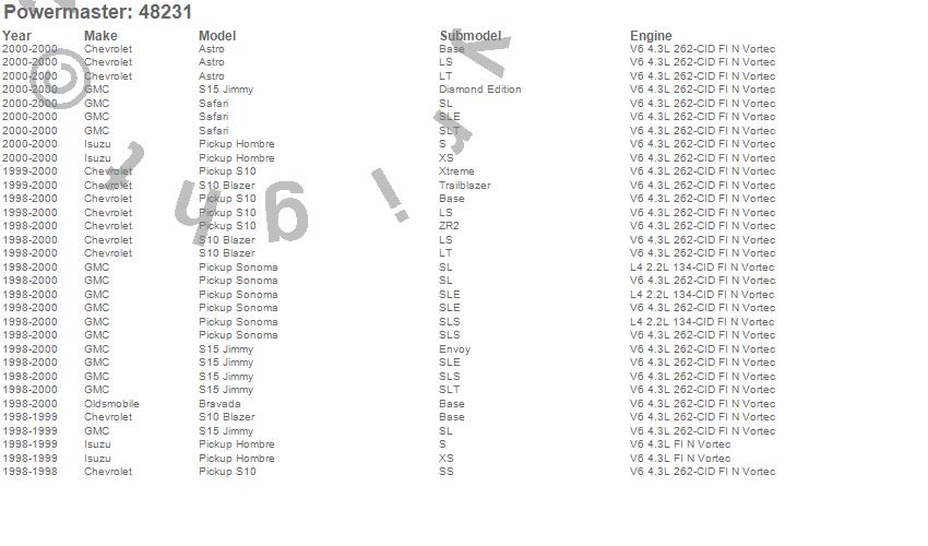 Below is an abreviated list of applications for the Alternator.