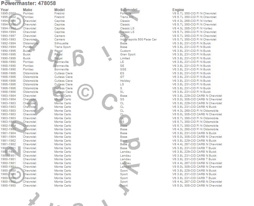Bonneville, Camaro, Caprice, Cutlass Ciera, Firebird, Monte Carlo, Regal, Silhouette, Trans Sport, Buick, Chevrolet, Oldsmobile, Pontiac, 2002, 2001, 2000, 1999, 1998, 1997, 1996 more…