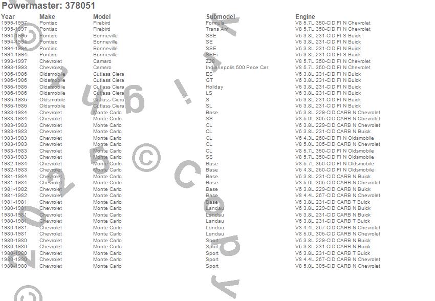 Bonneville, Camaro, Cutlass Ciera, Firebird, Monte Carlo, Chevrolet, Oldsmobile, Pontiac, 1997, 1996, 1995, 1994, 1993, 1986, 1984, 1983, 1982, 1981, 1980 more…