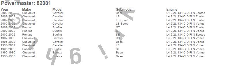 Beretta, Cavalier, Corsica, Sunfire, Chevrolet, Pontiac, 2002, 2001, 2000, 1999, 1998, 1997, 1996 more…