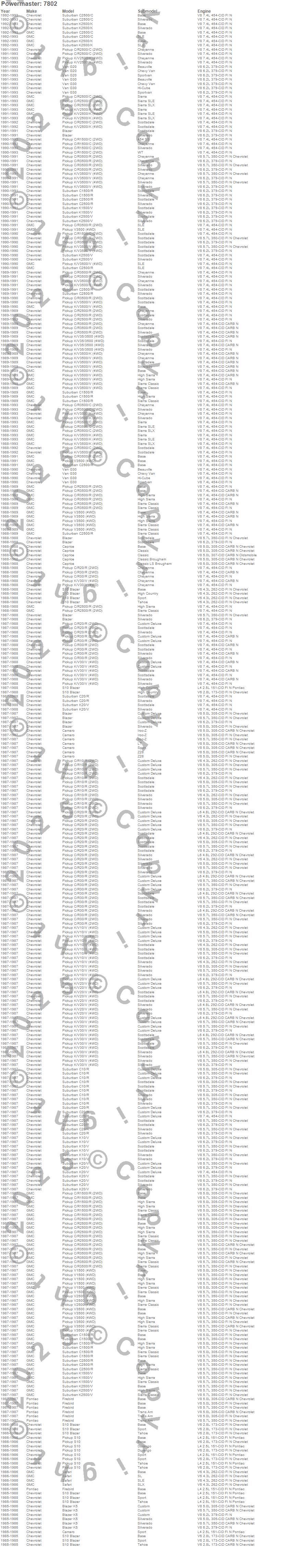 Below is an abreviated list of applications for the Alternator.Safari, GMC, 1986 more…