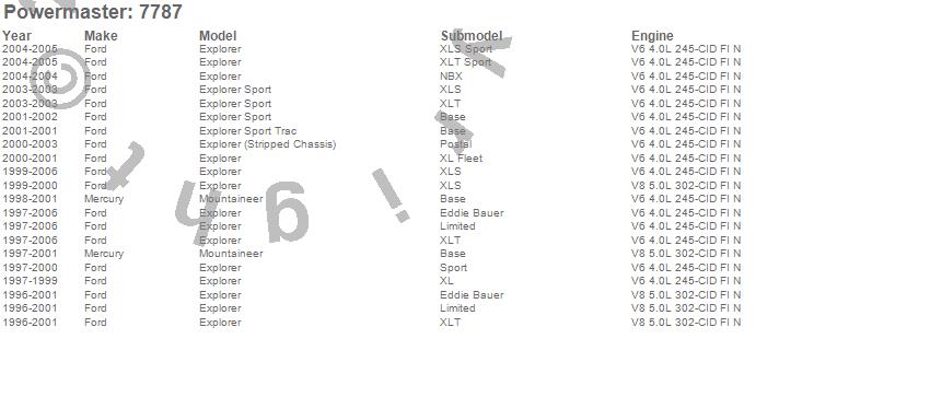 Below is an abreviated list of applications for the Alternator.Explorer, Explorer Sport Trac, Mountaineer, Ford, Mercury, 2001, 2000, 1999, 1998, 1997, 1996 more…