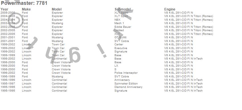 Below is an abreviated list of applications for the Alternator.