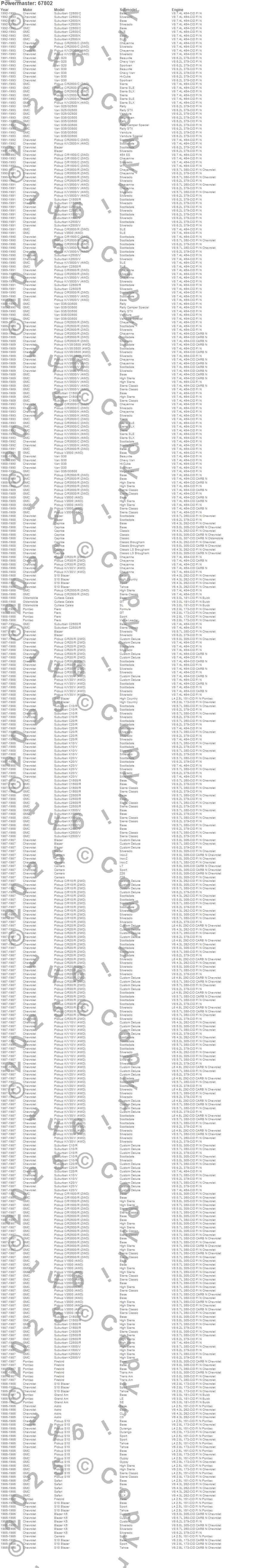 Astro, Blazer, C1500 Pickup, C2500 Pickup, C3500 Pickup, Camaro, Caprice, Cutlass Calais, Fiero, Firebird, G20, G2500, G30, G30 Van, G35/G3500 Van, G3500, Grand Am, K2500 Pickup, K3500 Pickup, R10 Pickup more…