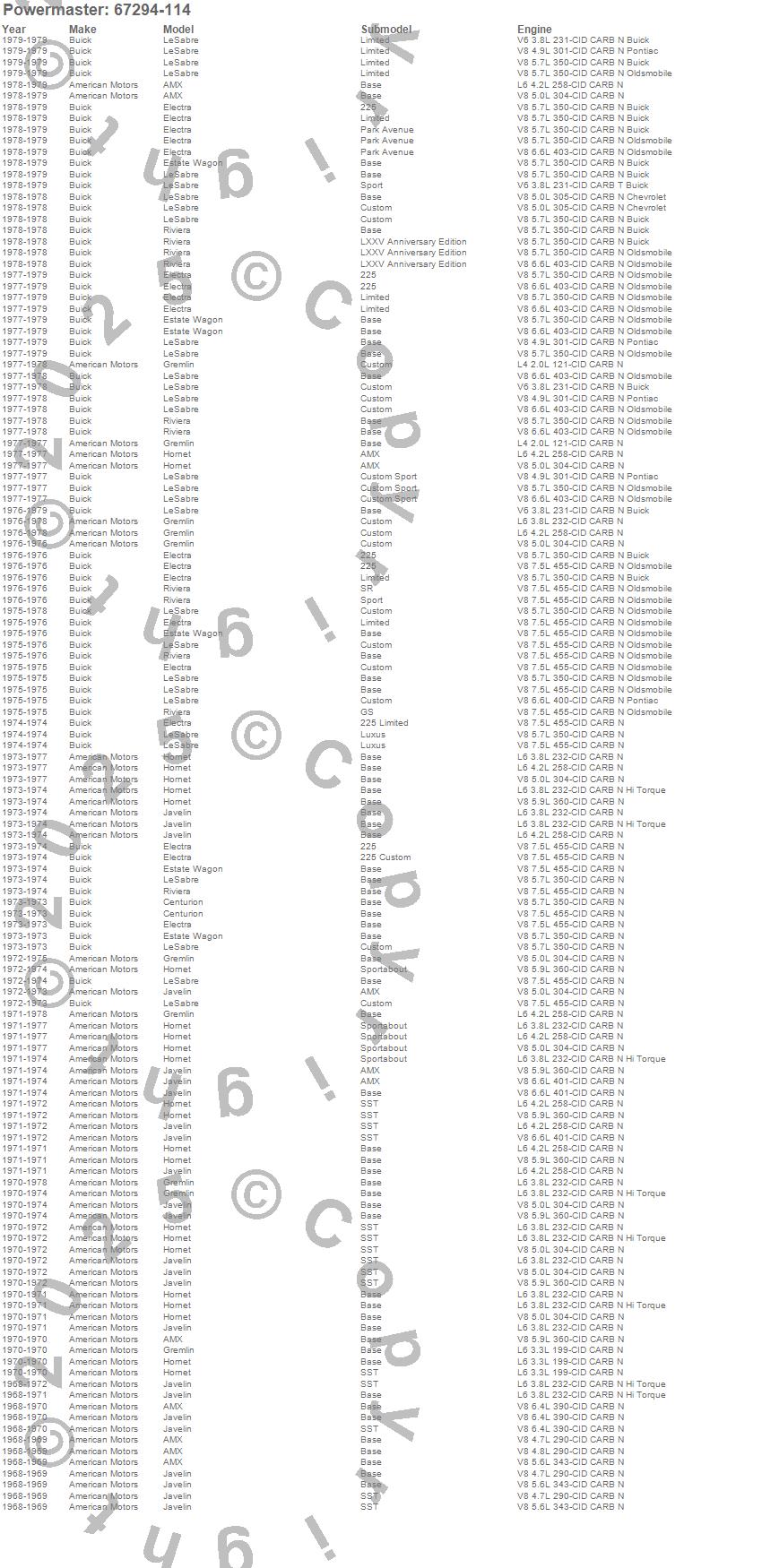 AMX, Centurion, Electra, Estate Wagon, Gremlin, Hornet, Javelin, LeSabre, Riviera, American Motors, Buick, 1979, 1978, 1977, 1976, 1975, 1974, 1973, 1972, 1971 more…