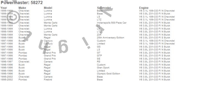 Camaro, Century, Firebird, Grand Prix, Lumina, Monte Carlo, Regal, Buick, Chevrolet, Pontiac, 2002, 2001, 2000, 1999, 1998, 1997, 1996, 1995 more…