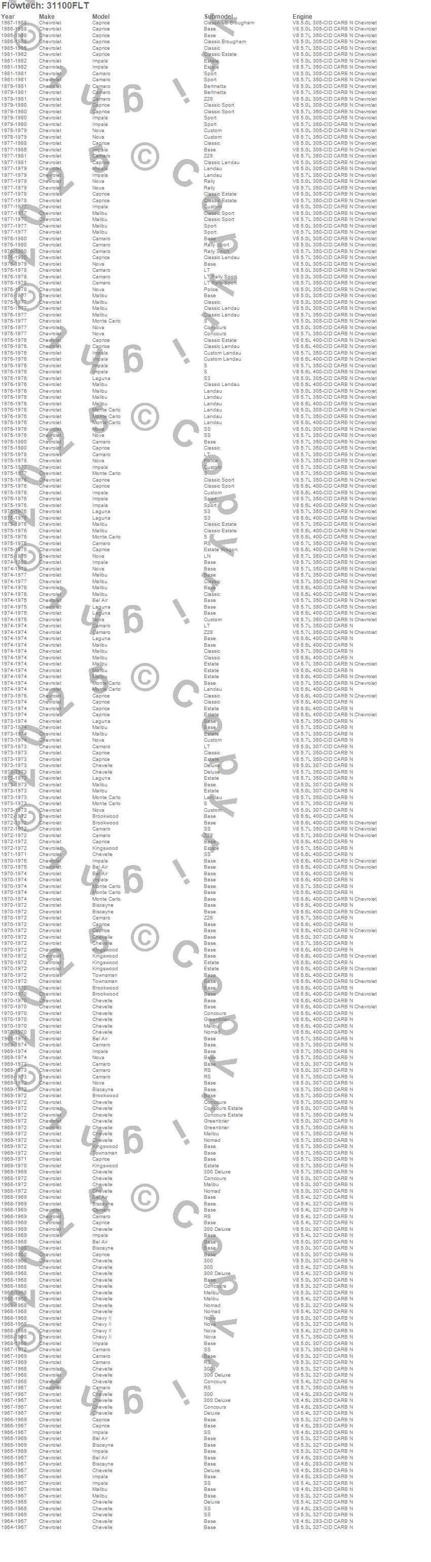 Bel Air, Biscayne, Brookwood, Camaro, Caprice, Chevelle, Chevy II, Impala, Kingswood, Laguna, Malibu, Monte Carlo, Nova, Townsman, Chevrolet, 1988, 1987, 1986, 1985, 1984 more…