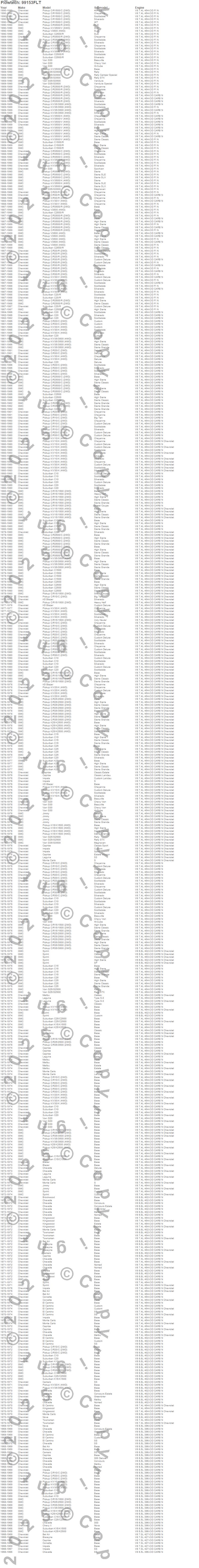 Bel Air, Biscayne, Blazer, Blazer K5, Brookwood, C10 Pickup, C10 Suburban, C15 Suburban, C15/C1500, C15/C1500 Suburban, C1500, C1500 Pickup, C1500 Suburban, C20 Pickup, C20 Suburban, C25 Suburban, C25/C2500 Pickup, C25/C2500 Suburban, C2500 Pickup, C2500 Suburban more…