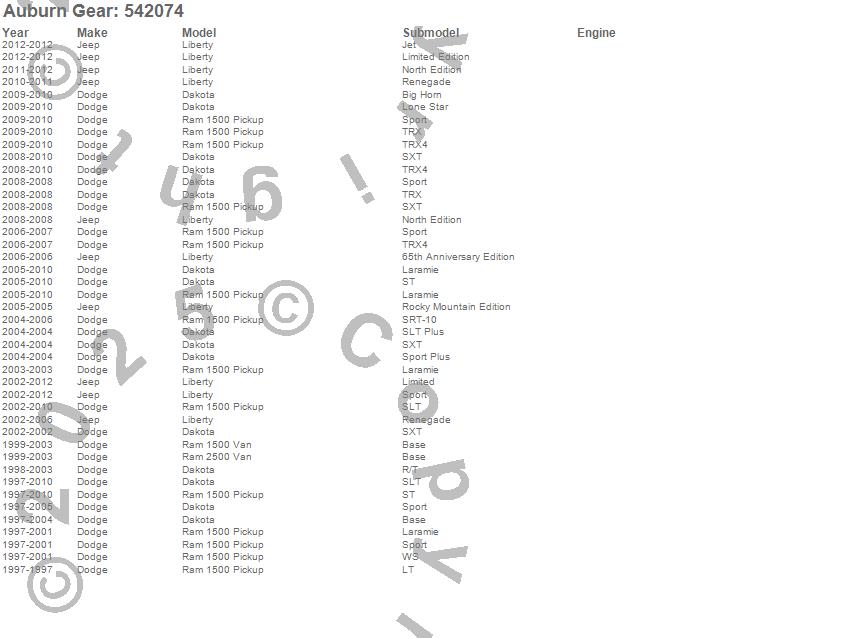 Below is an abreviated list of applications for the Auburn Gear HP Series Differential.