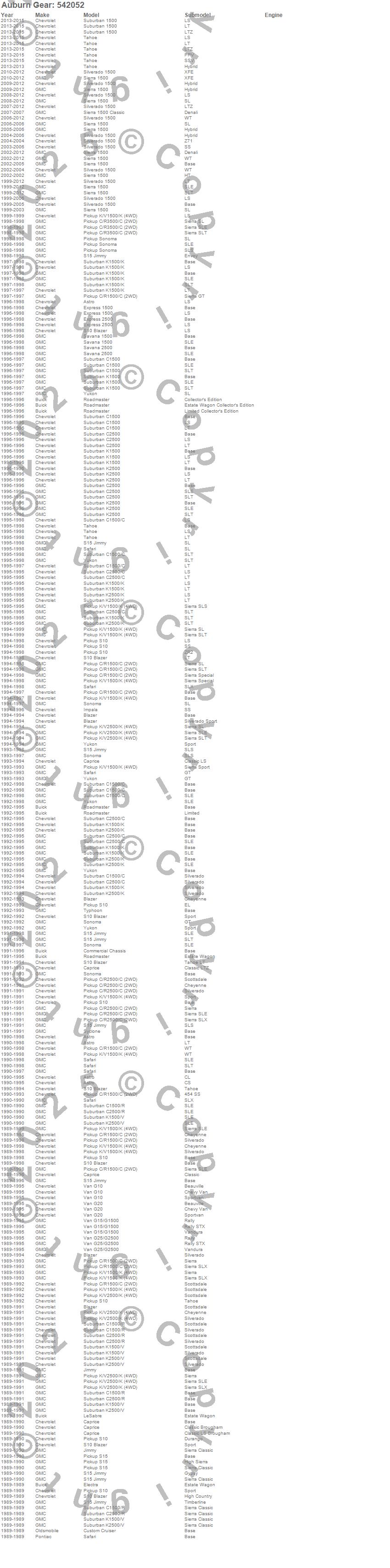 Below is an abreviated list of applications for the Auburn Gear Pro Series Differential.