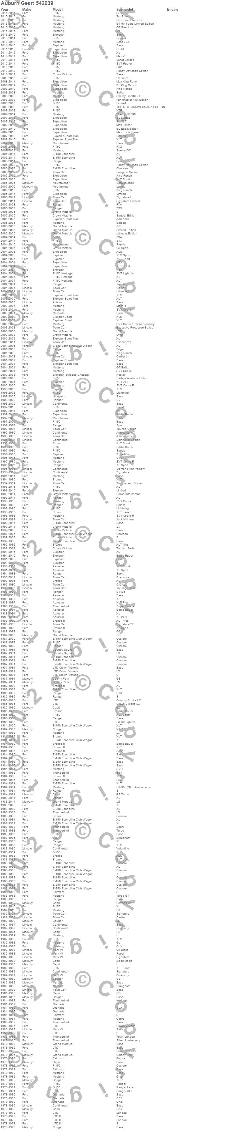 Below is an abreviated list of applications for the Auburn Gear Road Race Series Differential.