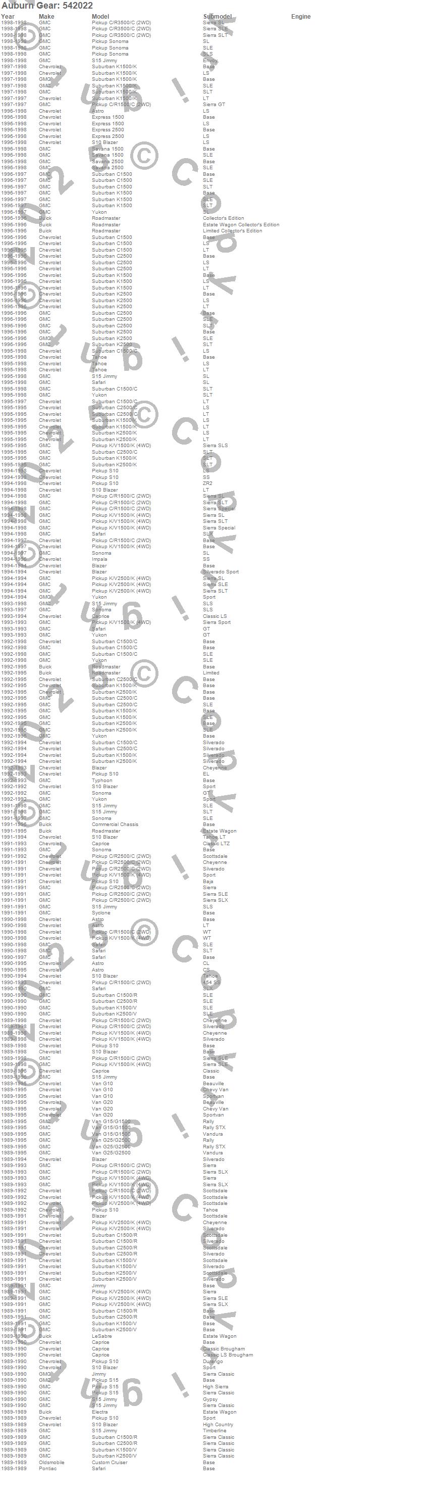 Below is an abreviated list of applications for the Auburn Gear HP Series Differential.