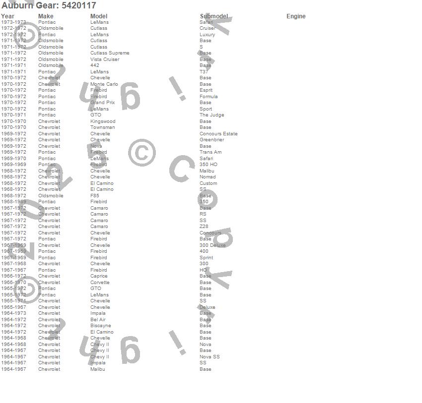 Below is an abreviated list of applications for the Auburn Gear Pro Series Differential.