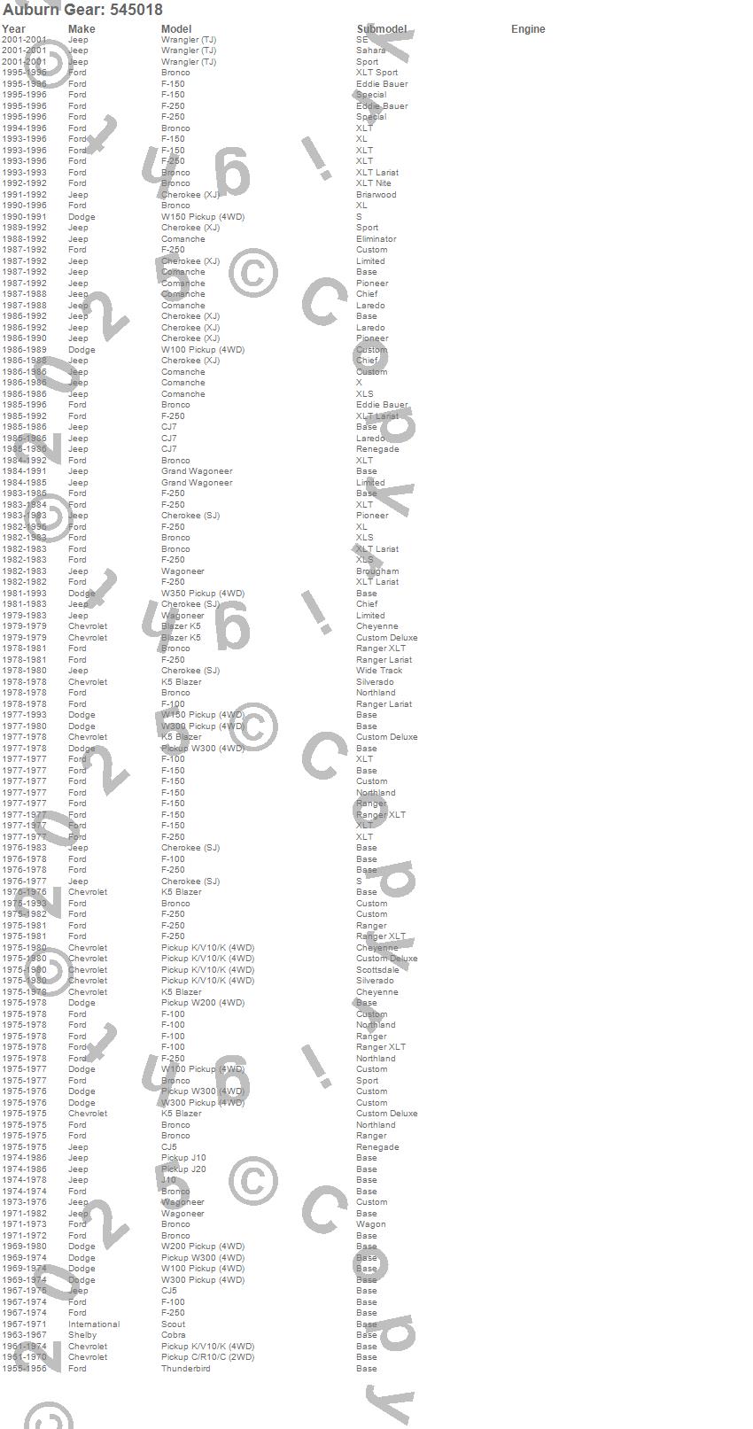 Below is an abreviated list of applications for the Auburn Gear Ected Max Differential.