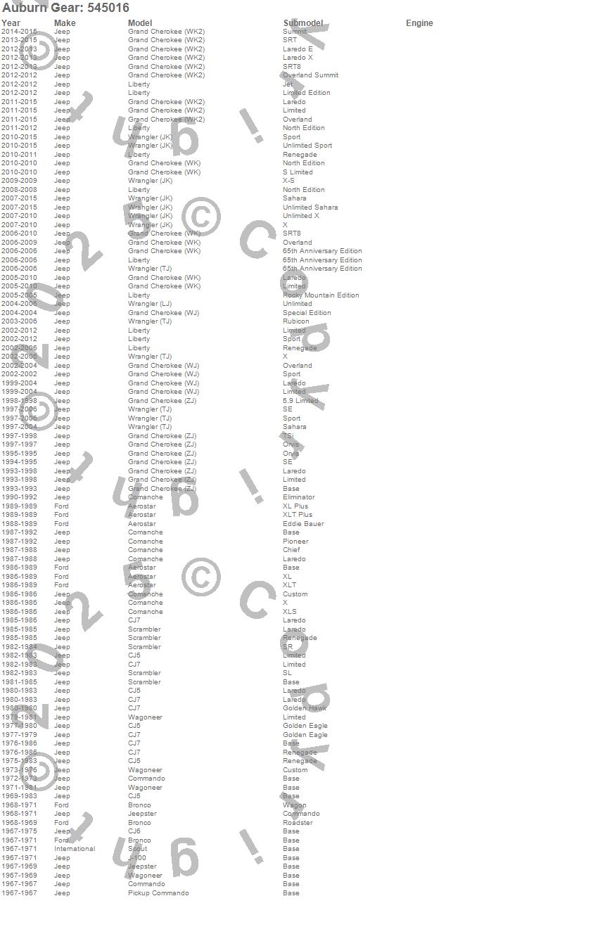 Below is an abreviated list of applications for the Auburn Gear Ected Max Differential.