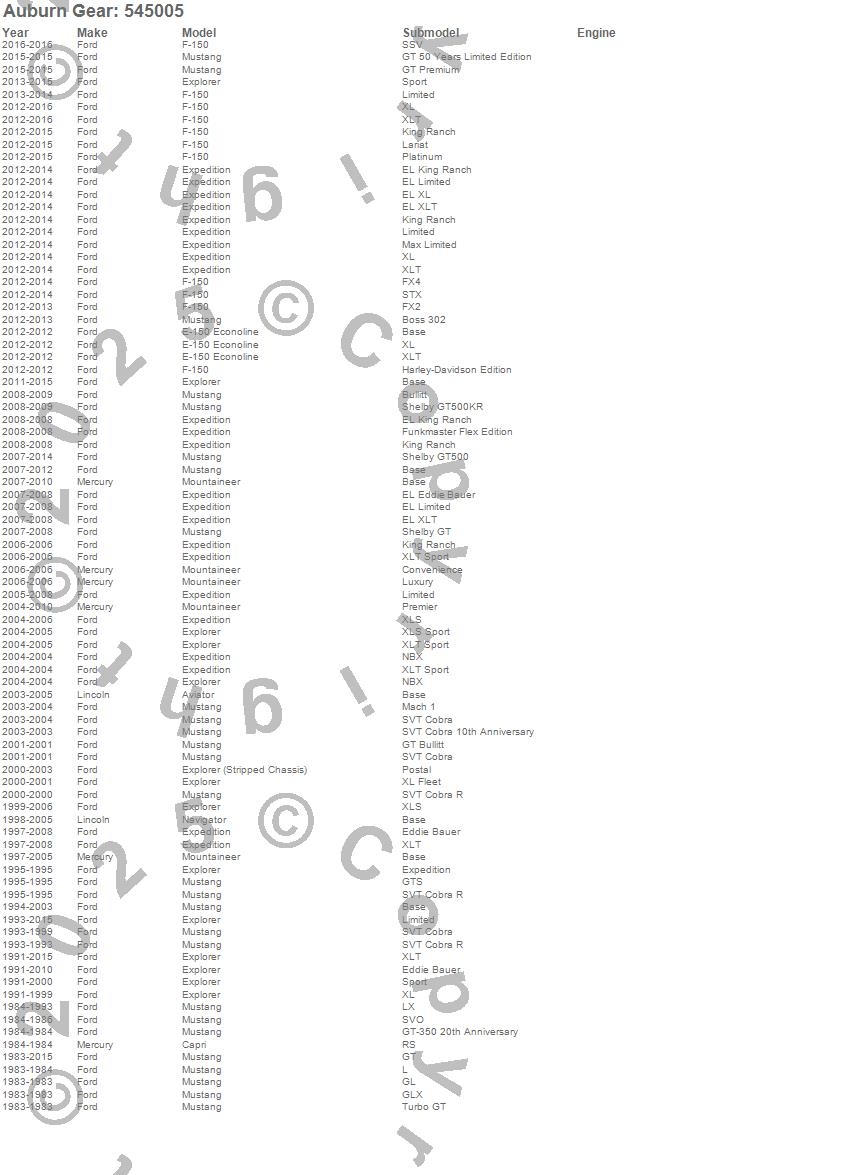 Below is an abreviated list of applications for the Auburn Gear Ected Max Differential.