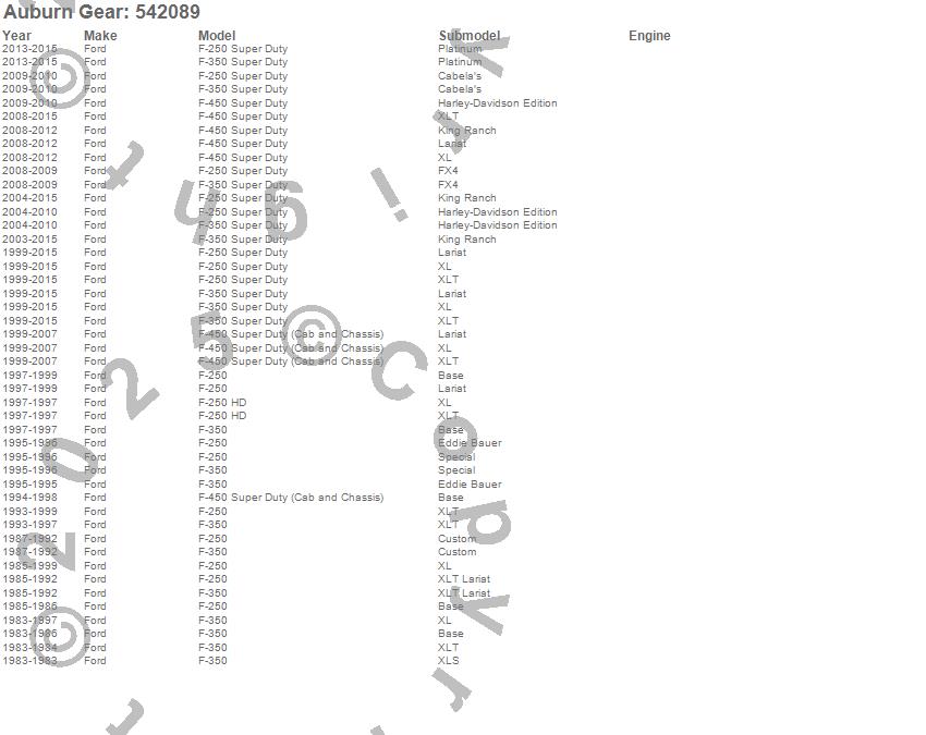 Below is an abreviated list of applications for the Auburn Gear HP Series Differential.
