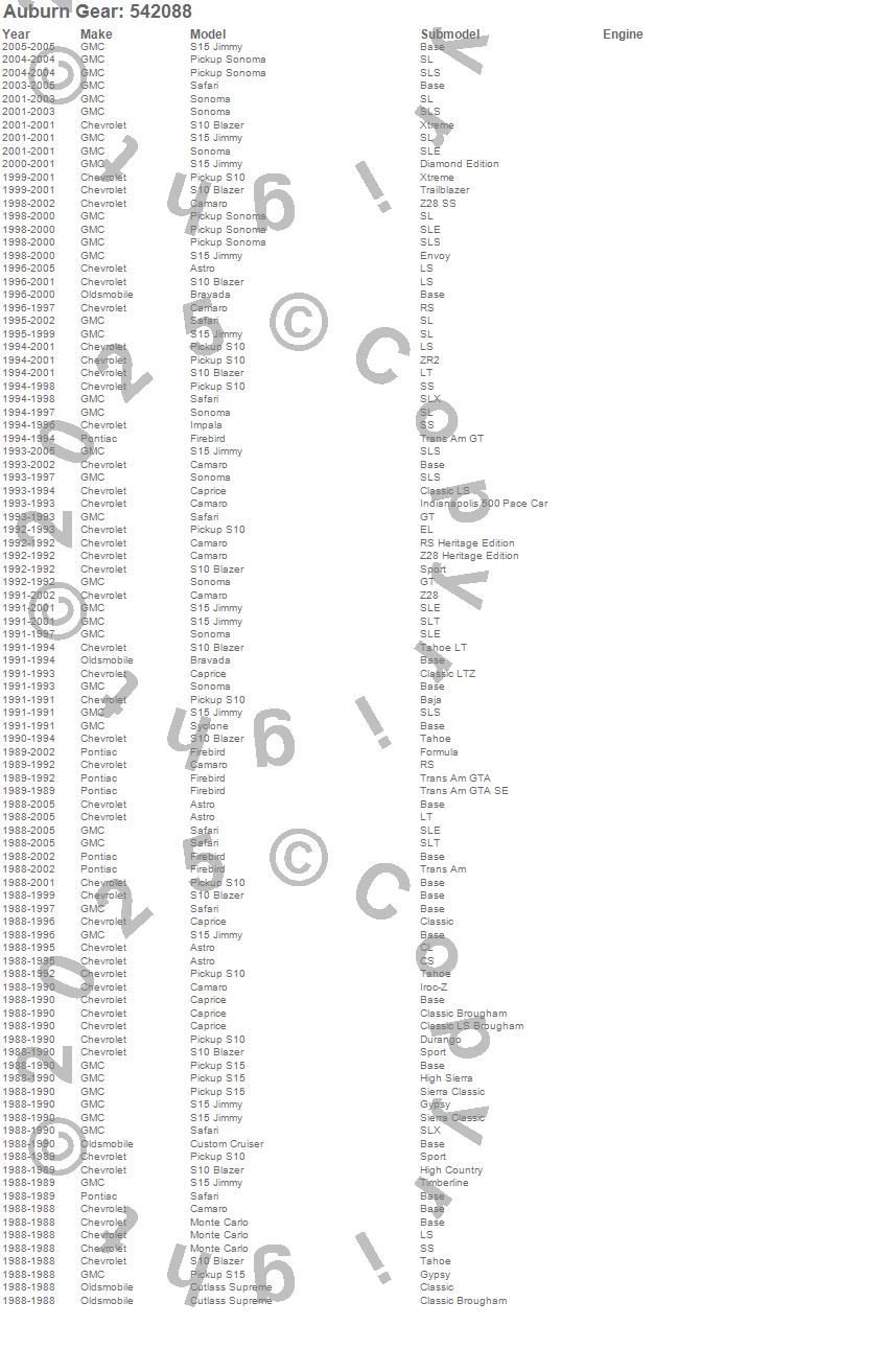 Astro, Bravada, Camaro, Caprice, Custom Cruiser, Cutlass Supreme, Firebird, Impala, Monte Carlo, S10 Blazer, S10 Blazer (Canadian), S10 Pickup, S15 Jimmy, S15 Pickup, Safari, Sonoma, Syclone, Chevrolet, GMC, Oldsmobile more…