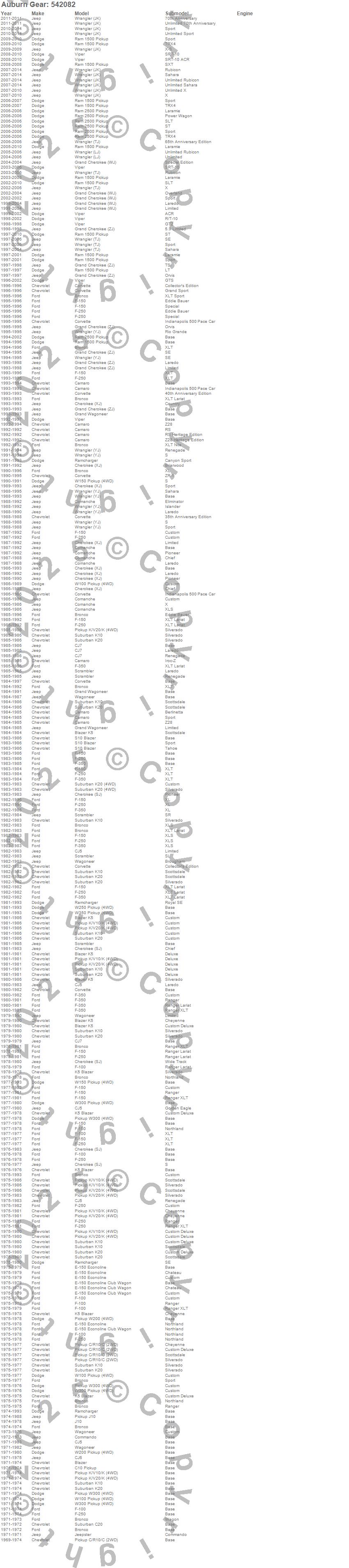 Below is an abreviated list of applications for the Auburn Gear Pro Series Differential.