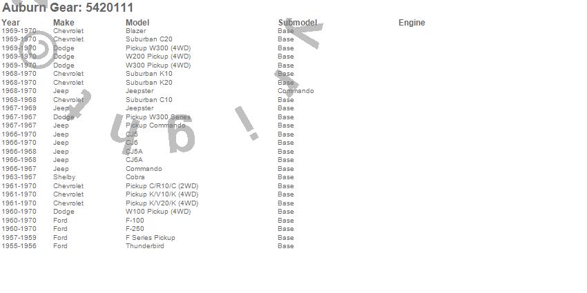 Below is an abreviated list of applications for the Auburn Gear HP Series Differential.