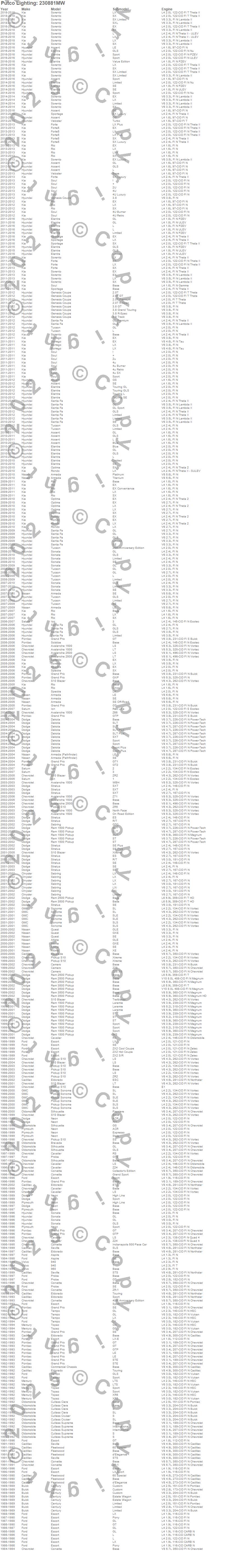 940, 960, Accent, Altima, Armada, Aspire, Avalanche 1500, Avalanche 2500, Borrego, Bravada, Camaro, Cavalier, Century, Commercial Chassis, Corvette, Cutlass Ciera, Cutlass Cruiser, Cutlass Supreme, Dakota, Elantra more…