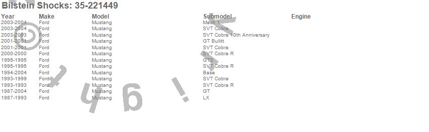 Mustang, Ford, 2004, 2003, 2002, 2001, 2000, 1999, 1998, 1997, 1996, 1995, 1994, 1993, 1992, 1991, 1990, 1989, 1988, 1987 more…