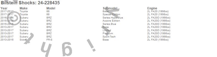 Below is an abreviated list of applications for the B8 Series SP Shock Absorber.
