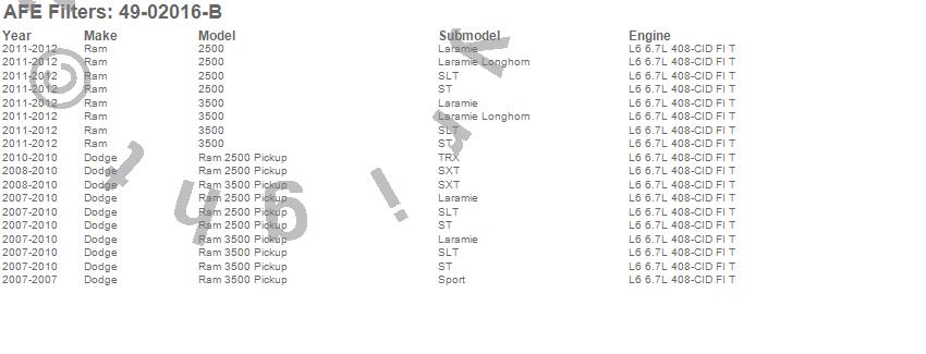 Below is an abreviated list of applications for the ATLAS DPF-Back Exhaust System.