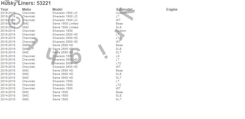 Below is an abreviated list of applications for the X-act Contour Floor Liner.