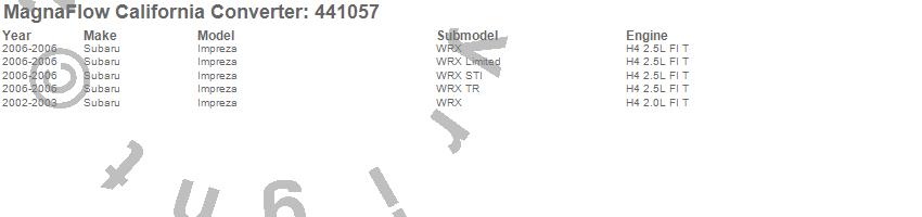 Below is an abreviated list of applications for the Direct Fit California Catalytic Converter.