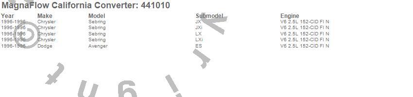 Below is an abreviated list of applications for the Direct Fit California Catalytic Converter.