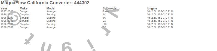 Below is an abreviated list of applications for the Direct Fit California Catalytic Converter.