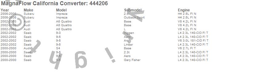 Below is an abreviated list of applications for the Universal California Catalytic Converter.