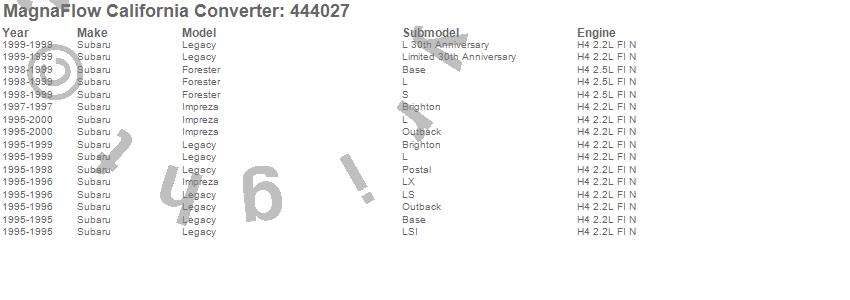 Below is an abreviated list of applications for the Direct Fit California Catalytic Converter.