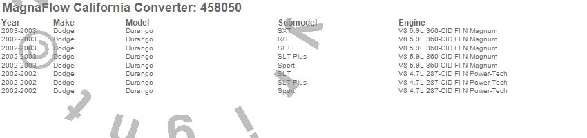 Below is an abreviated list of applications for the Direct Fit California Catalytic Converter.