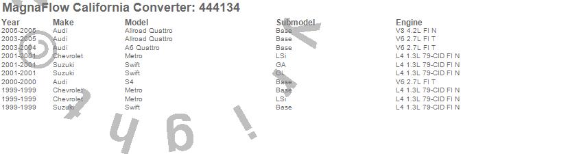 Below is an abreviated list of applications for the Universal California Catalytic Converter.