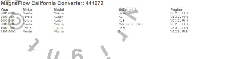 Below is an abreviated list of applications for the Direct Fit California Catalytic Converter.