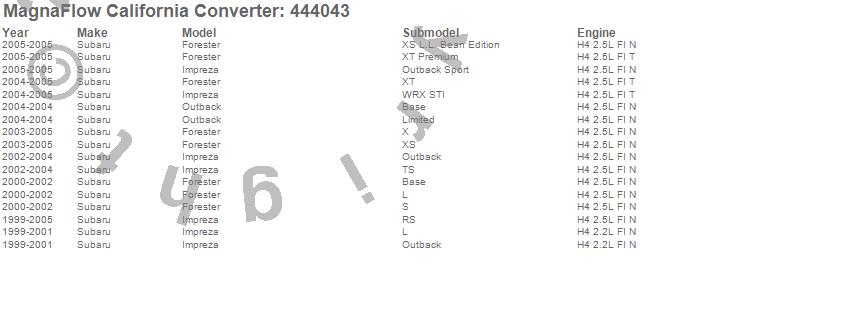 Below is an abreviated list of applications for the Direct Fit California Catalytic Converter.