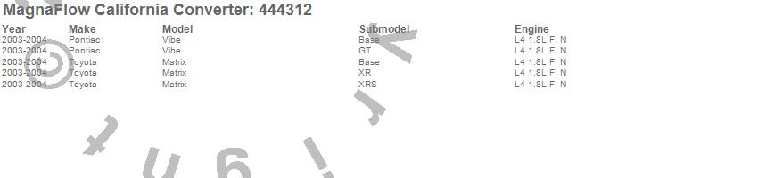 Below is an abreviated list of applications for the Direct Fit California Catalytic Converter.