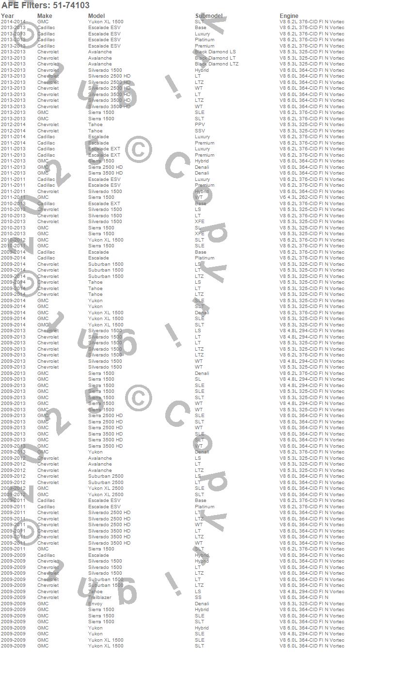 Below is an abreviated list of applications for the Momentum GT Pro DRY S Stage-2 Intake System.